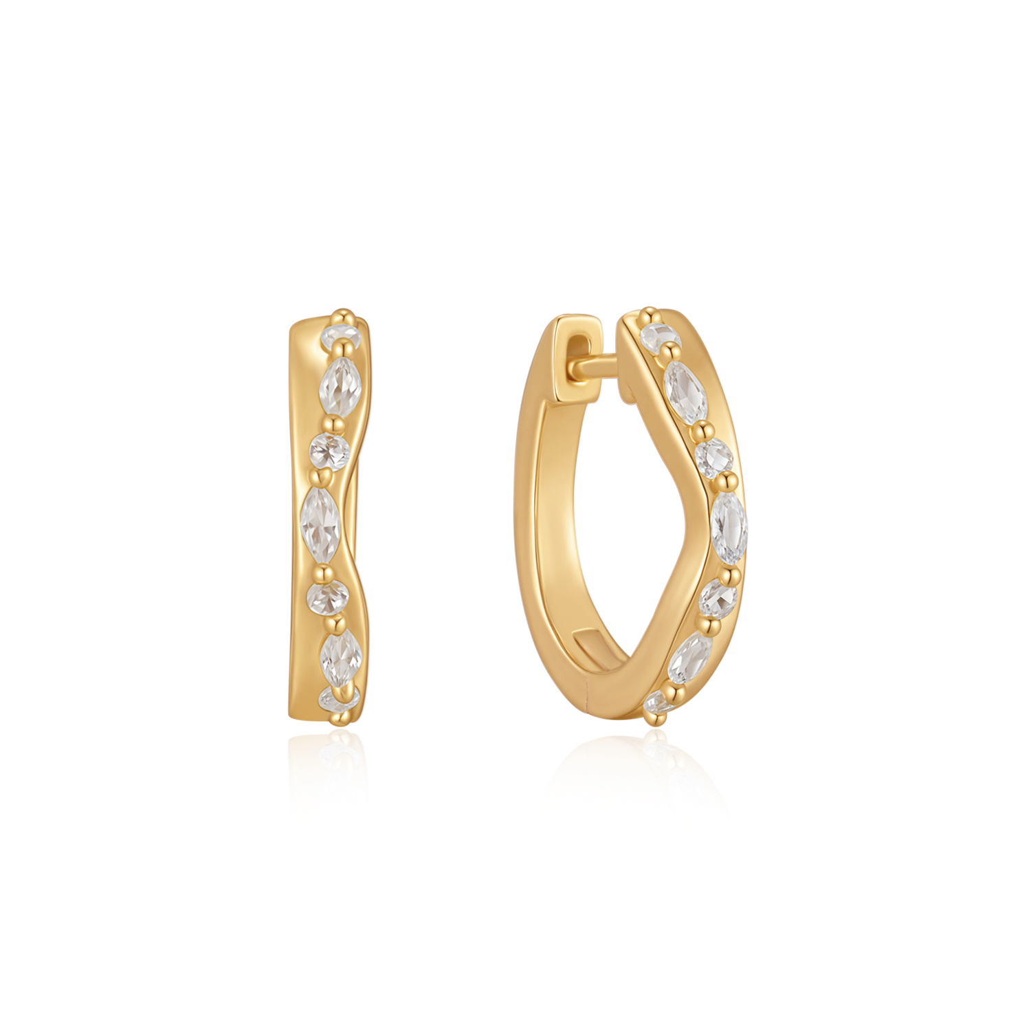 Disse smukke sølvforgyldte ørestikker har et elegant og moderne design med en cirkelformet base og en dekorativ bue. De funklende syntetiske cubic zirconia langs buen tilføjer et glitrende og eksklusivt udtryk. Den varme forgyldte overflade giver ørestikkerne et luksuriøst præg, som gør dem perfekte til både hverdag og festlige lejligheder, hvor stil og raffinement ønskes.