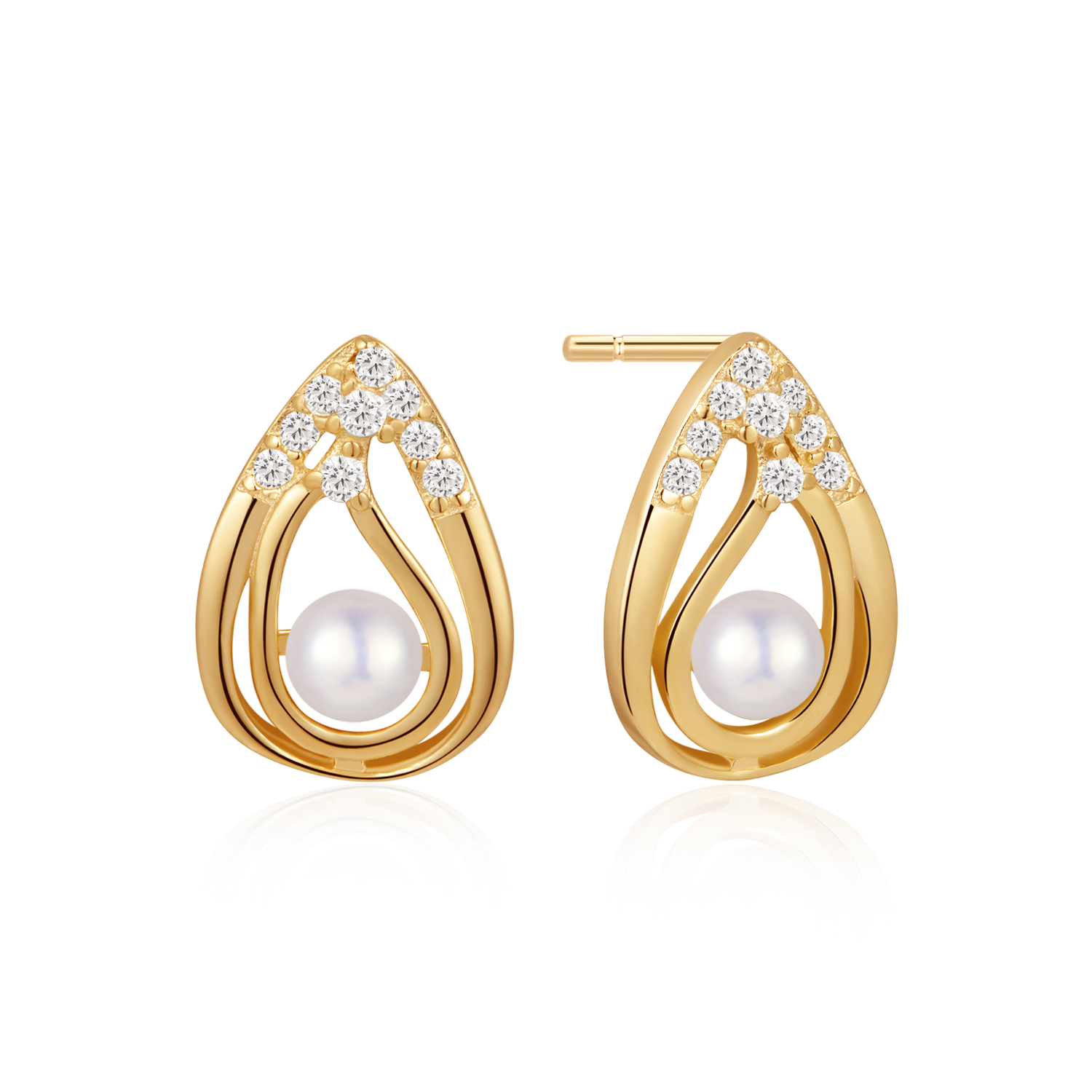 Luksuriøse sølvforgyldte ørestikker med et smukt dobbelt dråbedesign, der kombinerer klassisk elegance med moderne finesse. Øreringene er dekoreret med funklende syntetiske cubic zirconia-sten, som fremhæver den naturlige glans fra ferskvandsperlen i midten. Den varme guldoverflade og det tidløse design gør dem perfekte til både hverdagsbrug og festlige lejligheder.