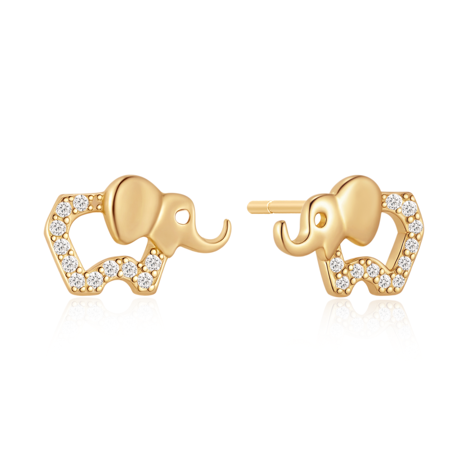 Disse sølvforgyldte ørestikker har et yndigt elefantdesign prydet med funklende syntetiske cubic zirconia sten, der giver et elegant og livligt udtryk. Den gyldne overflade tilfører varme og eksklusivitet, mens designet symboliserer styrke og held. Et charmerende og tidløst smykke, perfekt til både hverdag og festlige lejligheder, hvor du ønsker et strejf af personlighed og glans.