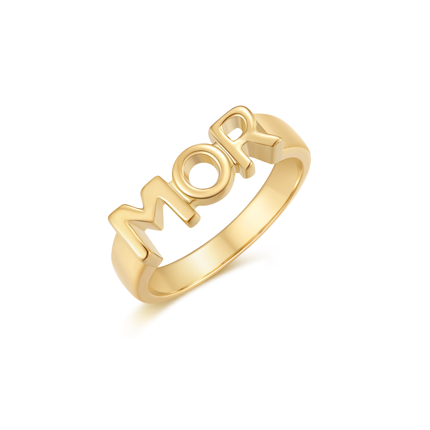 Elegant sølvforgyldt ring med teksten “Mor” på toppen – et smukt symbol på kærlighed, omsorg og familie. Den blankpolerede overflade giver et varmt, gyldent skær, der fremhæver ringens enkle og tidløse design. Perfekt som en meningsfuld gave til en mor, der fortjener noget helt særligt. Fås i størrelser fra 50 til 60 og passer til enhver anledning.
