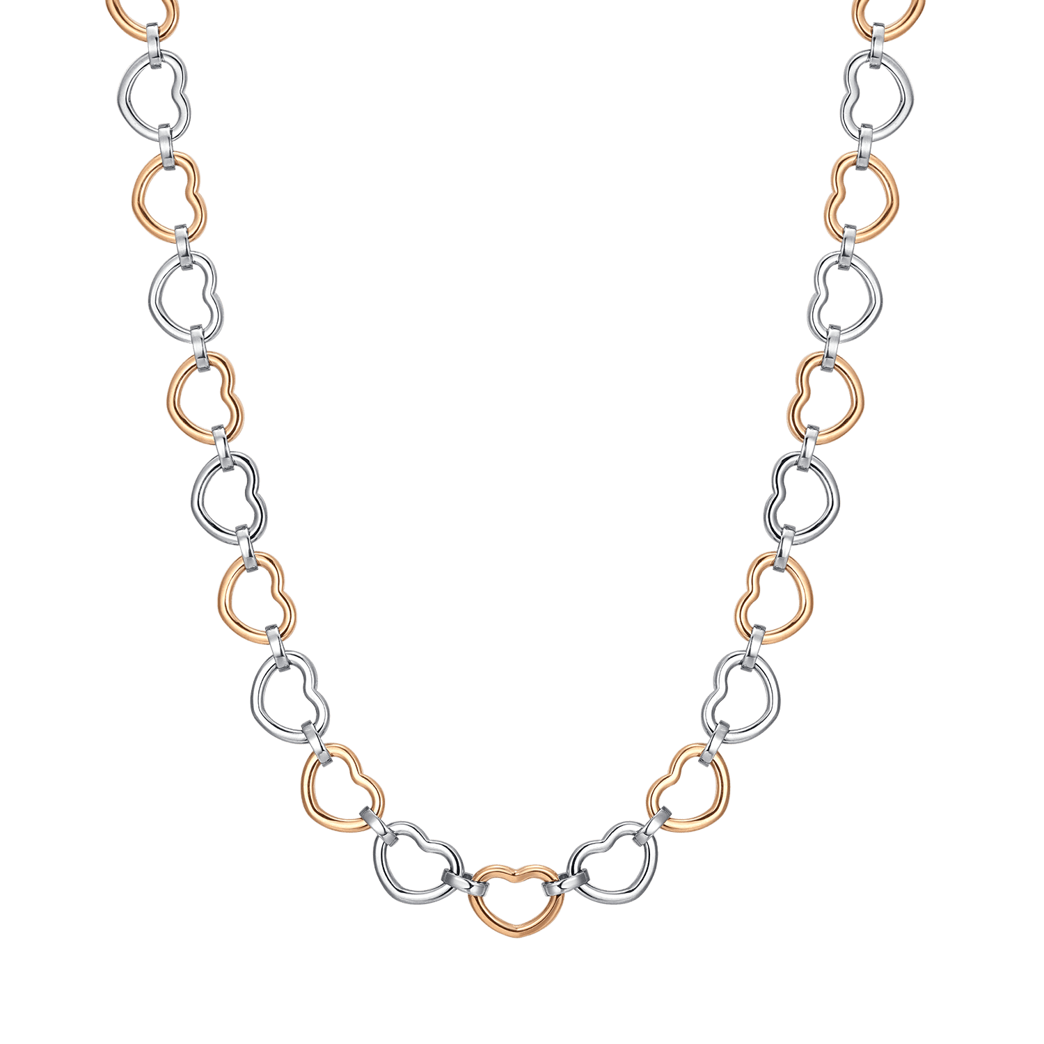 Denne smukke stålhalskæde er designet med fine hjerter i en elegant kombination af rosafarvet og blankt stål. Det feminine og tidløse design gør halskæden ideel til både daglig brug og særlige lejligheder. Fremstillet i holdbart rustfrit stål, der bevarer sin glans og farve over tid. Den justerbare længde giver mulighed for perfekt pasform til enhver stil.