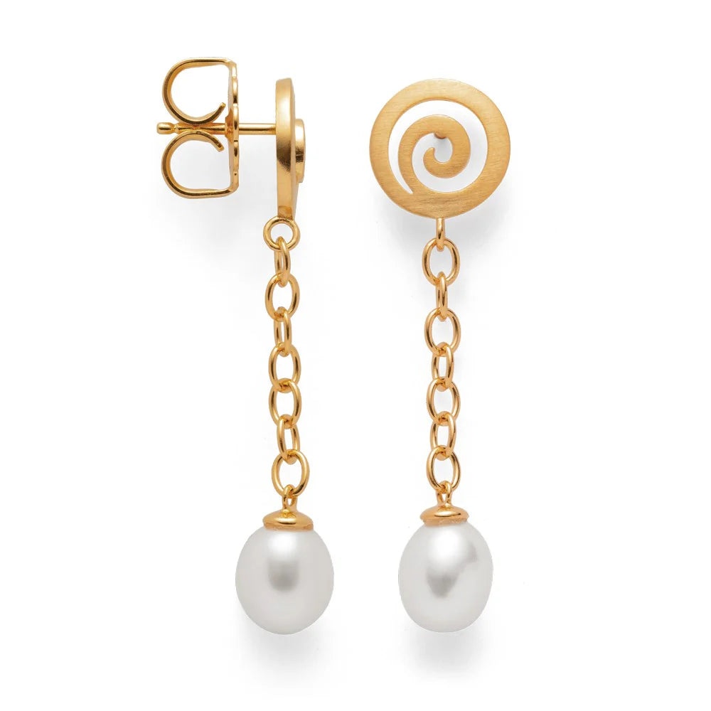 Sterling sølv Øreringe, fg mat/blank, perler 6,82ct