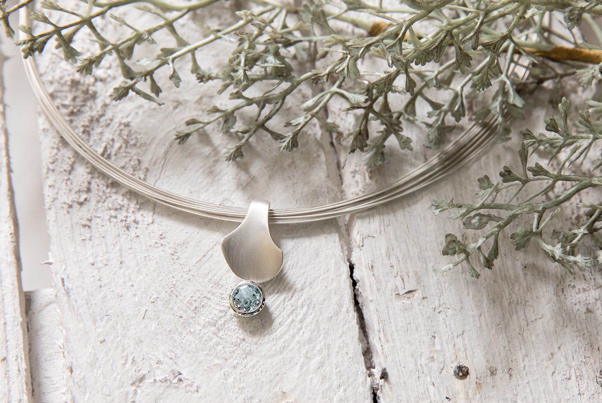 Sterling sølv Vedhæng mat/blank, blå topas 1,08ct
