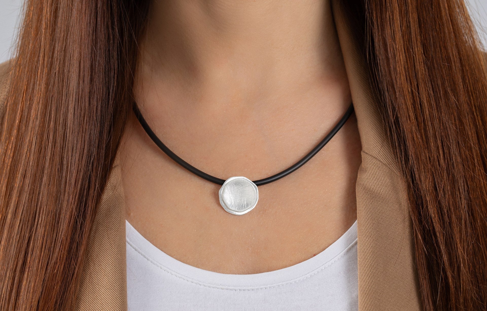 Dette elegante vedhæng i sterlingsølv er designet med en mat og børstet overflade, hvilket giver smykket et moderne og sofistikeret udtryk. Vedhænget passer perfekt til kvinder, der ønsker et tidløst smykke, som kan bæres både til hverdag og til særlige lejligheder. Dets enkle, men stilfulde design fremhæver sølvets naturlige skønhed og giver et diskret, men elegant look, der komplementerer enhver halskæde.